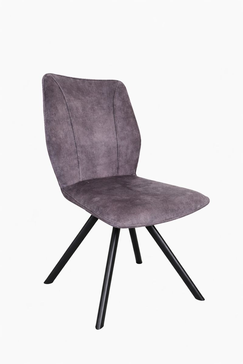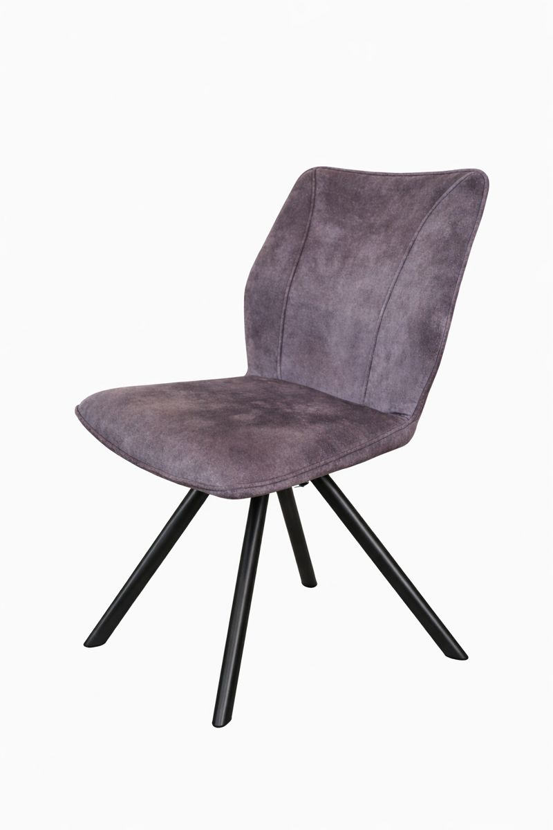 Moderní jídelní židle s elegantním tmavě šedým čalouněním a jemnou strukturou látky. Pohodlný, pěnou polstrovaný sedák a ergonomicky tvarované opěradlo zajišťují komfort i při delším sezení. Stabilní kovová podnož v černém matném provedení dodává židli moderní vzhled a pevnost. Díky absenci područek je praktická a snadno se zasune pod stůl, ideální do jídelny, kuchyně i pracovního prostoru.