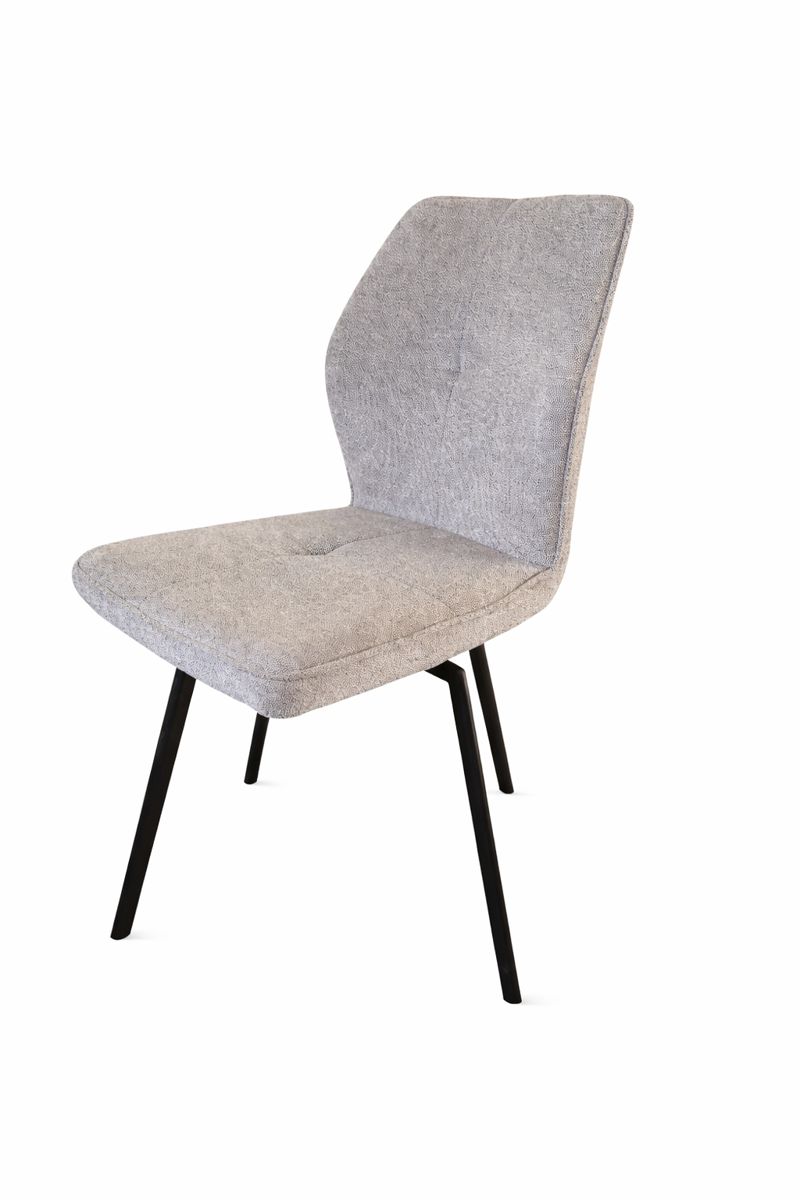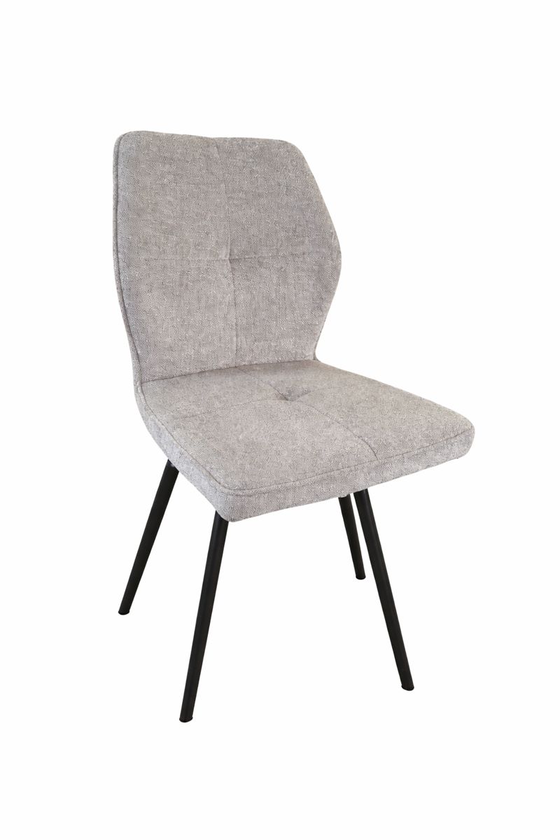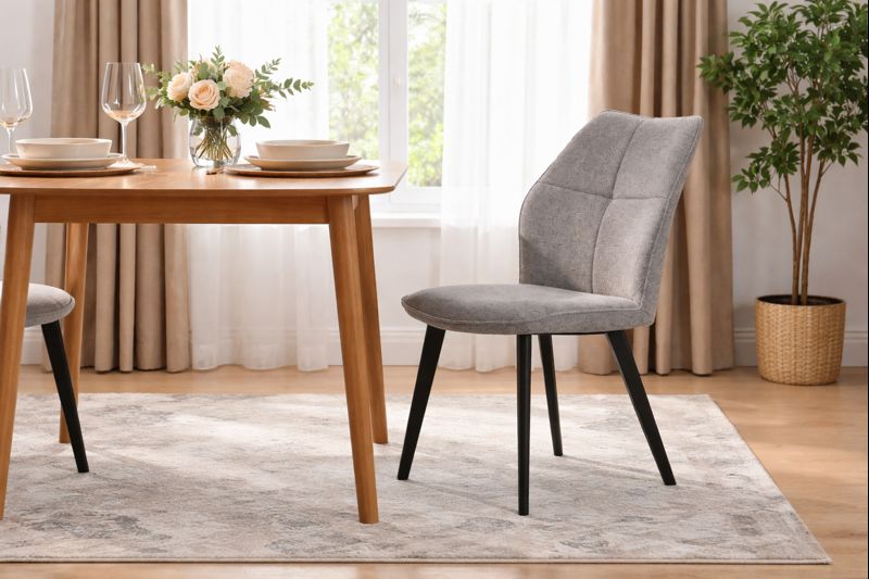 Tato moderní jídelní židle spojuje čistý design s vysokým komfortem sezení. Měkké šedé čalounění působí elegantně a nadčasově, díky čemuž se židle snadno kombinuje s různými styly interiéru – od moderního až po skandinávský. Jemně tvarované opěradlo spolu s pěnou polstrovaným sedákem poskytují ergonomickou oporu zad a pohodlí i při delším sezení u jídelního stolu.
