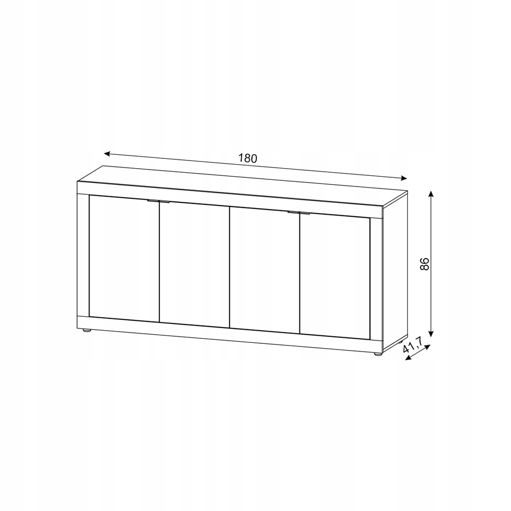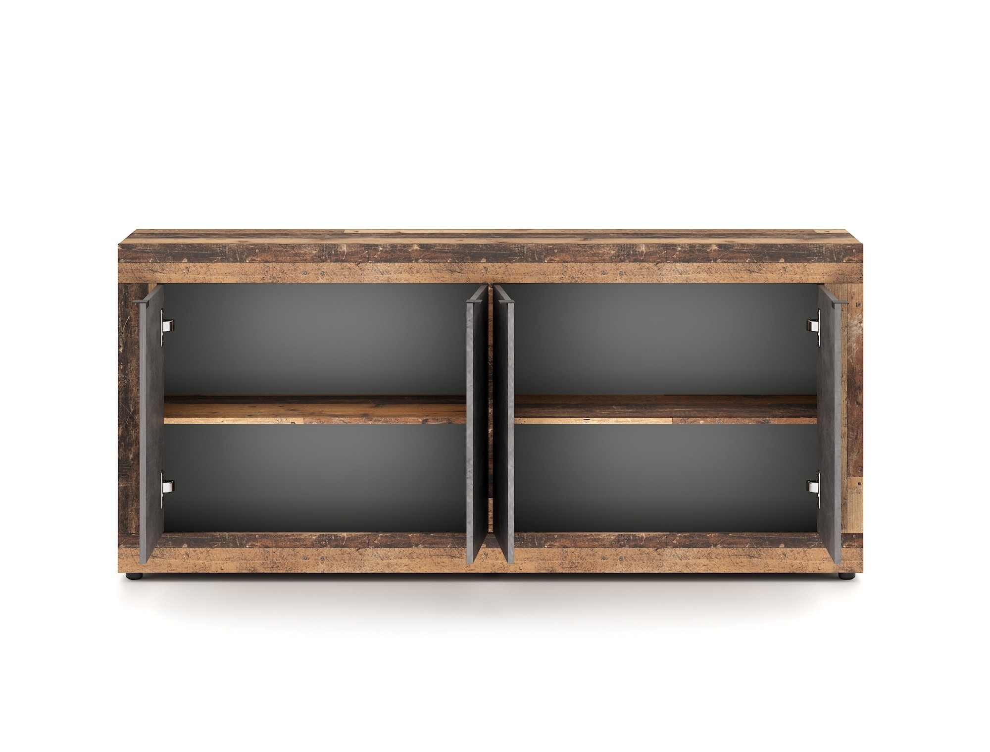 Vnitřní uspořádání komody nabízí dostatek prostoru – čtyři samostatně otevíratelné skříňky a dvě praktické police umožňují pohodlné rozdělení obsahu, ať už ji využijete v obývacím pokoji na sklenice a textilie, nebo v předsíni na šály, tašky a sezónní doplňky. Systém tichého dovírání dvířek zajišťuje, že každé zavření proběhne hladce a bez rušivých zvuků. Tato komoda je navržená pro každodenní použití – vydrží zátěž, aniž by ztratila svůj půvab.