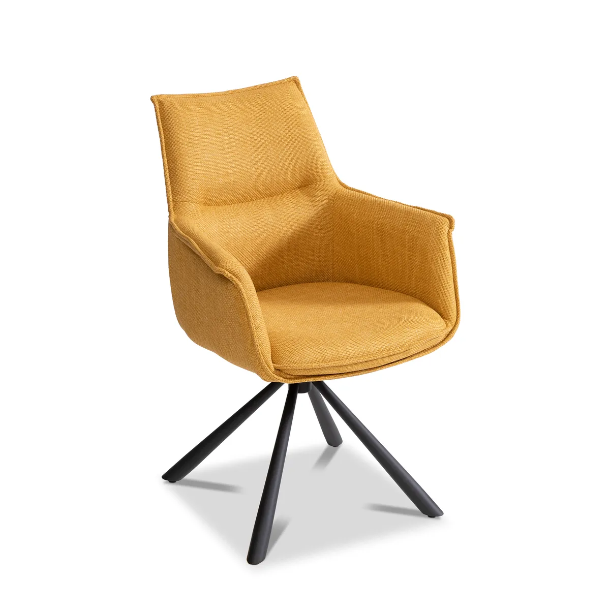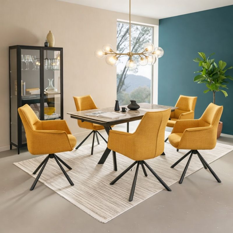 Křeslo Berkeley zaujme elegantním a nadčasovým designem a zároveň nabízí výjimečné pohodlí díky měkkému čalounění. Potah z hrubě texturované látky v okrové barvě působí stylově a útulně. Stabilní kovová konstrukce s černou povrchovou úpravou zajišťuje pevnost a dlouhou životnost. Křeslo je vybaveno otočnou funkcí o 360° (bez návratového mechanismu) a má nosnost až 140 kg. Ideální pro relax, čtení i posezení s přáteli.